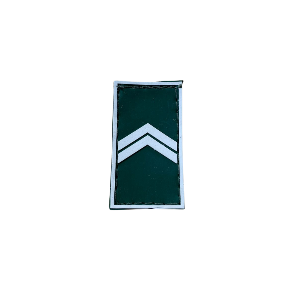 - **Design**: Apresenta a **divisa de Cabo** em cor branca, sobre um fundo verde, em conformidade com os padrões do Exército Brasileiro.