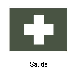 - Distintivo emborrachado confeccionado pelo processo de moldagem a quente, na cor branca, sobre um suporte na cor verde, sendo aplicado por meio de velcro na cor verde oliva.